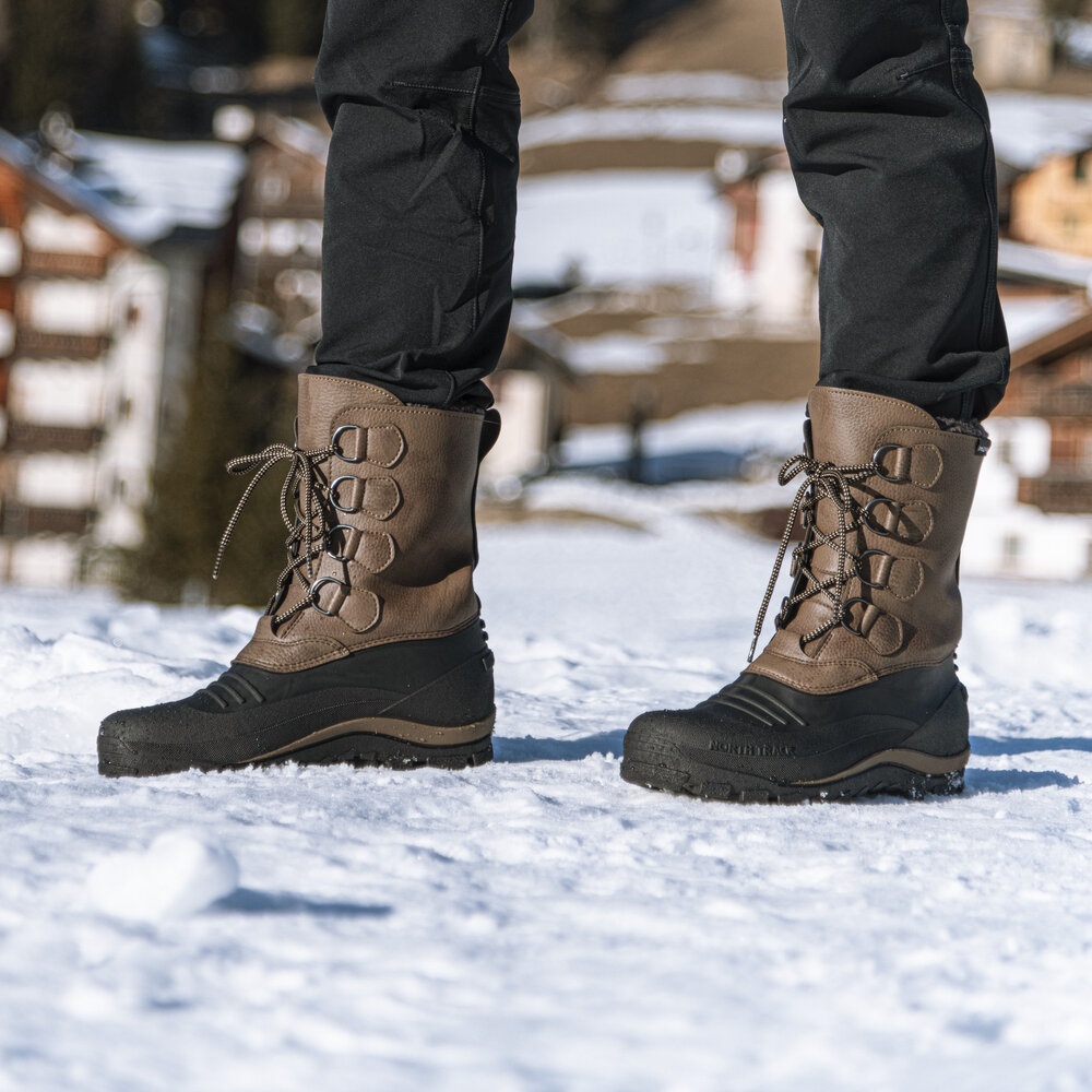 The thermoplastic rubber sole guarantees traction and grip on snowy, muddy, and icy surfaces.